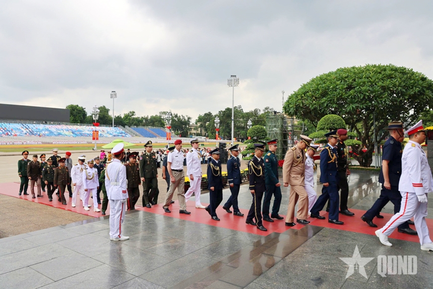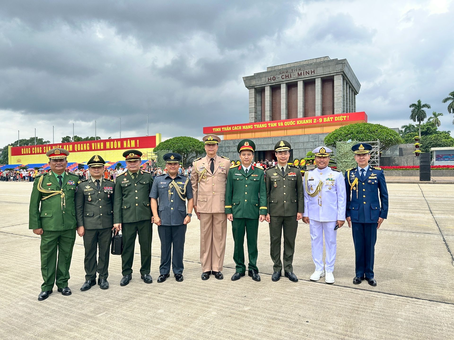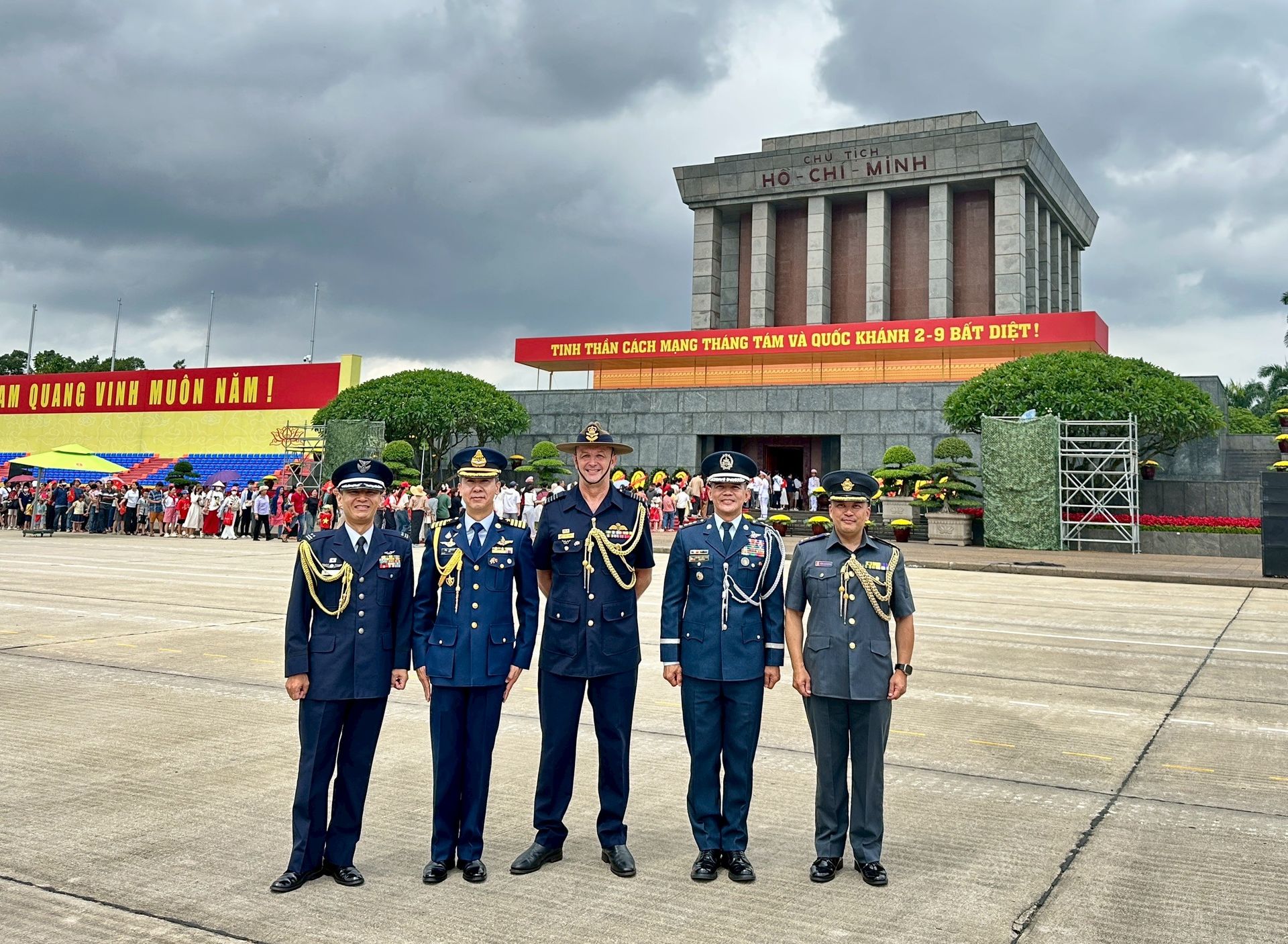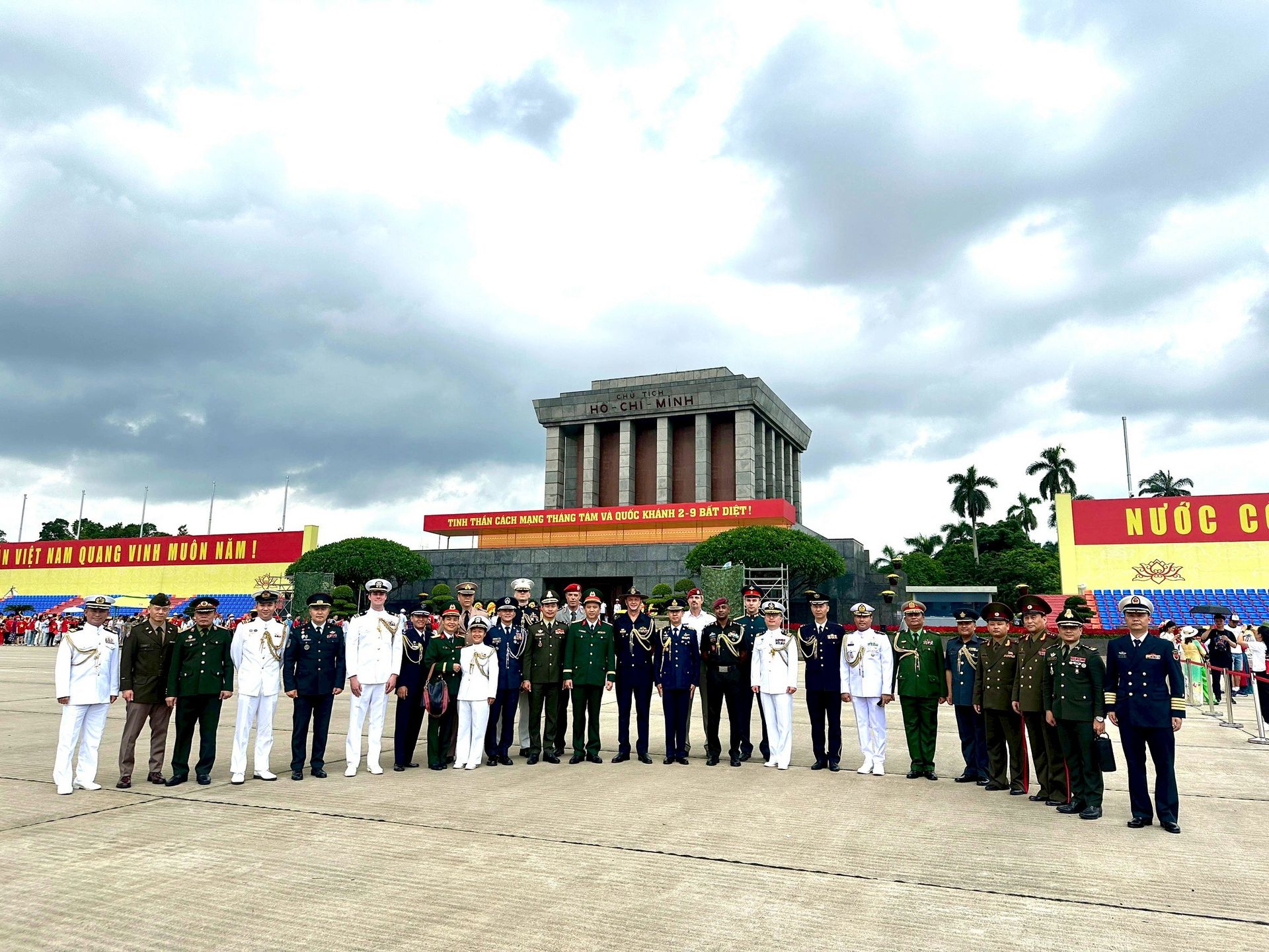 ได้เข้าร่วมกับ ผชท.ทหาร ตป./ฮานอย เยี่ยมชมสุสานประธานโฮจิมินห์ ซึ่งเป็นสถานที่จัดพิธีสวนสนามงานครบรอบ